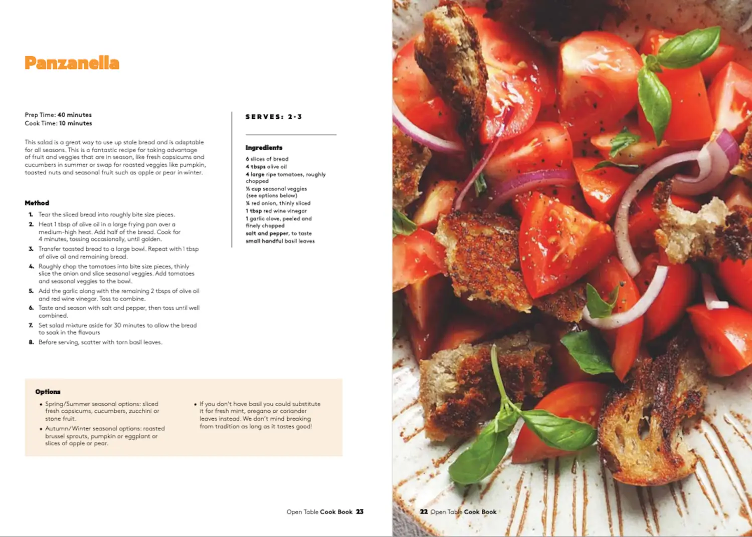A new cookbook from our waste-free friends at Open Table! A collection of delicious and wholesome recipes from their ‘use what you’ve got’ approach to free community lunches. All profits from this sale donated to Open Table.